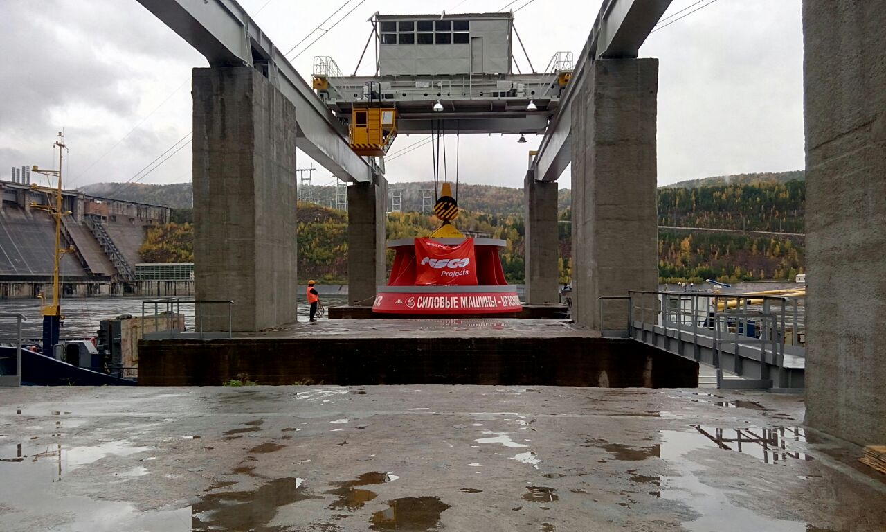 The ship with hydraulic equipment put out of St. Petersburg on August 26th, traveled more than 6000 km through the White Sea – Baltic Sea Canal, the Northern Sea Route and river Yenisei and arrived at the pier of the Krasnoyarsk hydropower plant on September 19th. The mooring of the vessel, preparation, unloading and delivery of the first wheel to the main generator hall of the Krasnoyarsk hydropower plant lasted six hours, of the second wheel – four hours. All works were completed by September 20th.